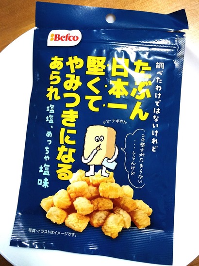 ローソンにて70P使ってお試し引き換え。 栗山製菓さん「たぶん日本一堅くてやみつきになるあられ 」の 「塩塩、めっちゃ塩味」(・∀・) 栗山さん···