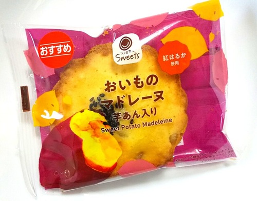 ファミマのお芋掘りをひっそりと継続中。 今回は「おいものマドレーヌ~芋あん入り~」(・∀・) 紅はるかのペーストと蜜漬けにした紅はるかの角切り···