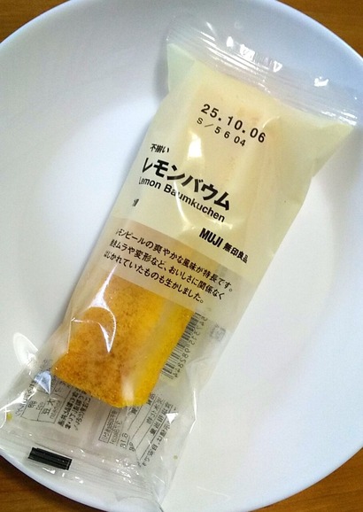 ローソンで買える無印おやつ「不揃い レモンバウム」(・∀・) レモンピールの爽やかな風味が特長です。焼きムラや変形など、おいしさに関係なくはじ···