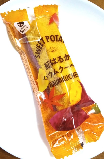 ファミマのお芋掘りおやつ「紅はるかバウムクーヘン」(・∀・) 紅はるかのペーストを使用した「しっとりなめらか」食感のバウムクーヘンです。さつま···