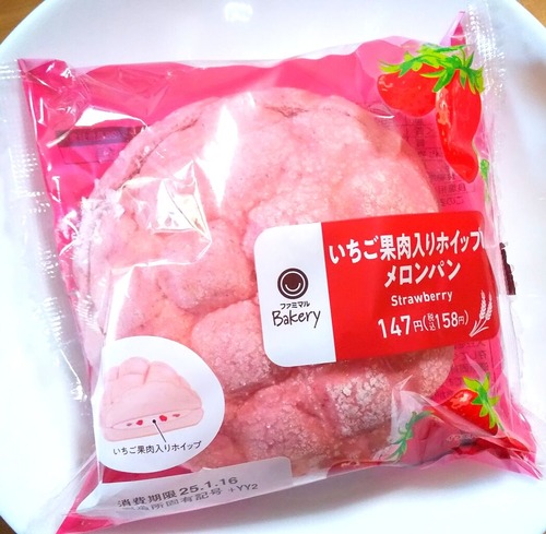 【ファミマのいちご狩りR】いちご果肉入りホイップのメロンパン