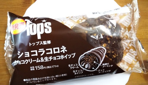 ローソンの新作パン。 関東甲信越エリア限定「トップス監修 ショコラコロネ」(・∀・) チョコ生地に生チョコクリームとチョコホイップを入れ、皮つき···