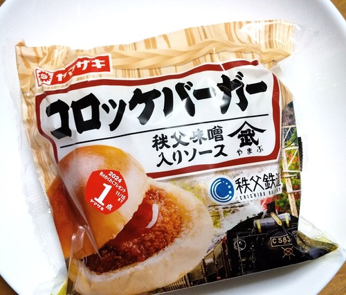 ヤマザキさまの10月の新商品。 秩父鉄道コラボ品で、新井武平商店(ヤマブ)さんの秩父味噌を使った 「コロッケバーガー(秩父味噌入りソース)」(···