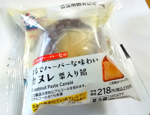 関東甲信越エリア限定のローソン新作すいつ。 ありあけハーバー監修「まるでハーバーな味わいカヌレ 栗入り餡」(・∀・) カヌレのむっちりとした生地···