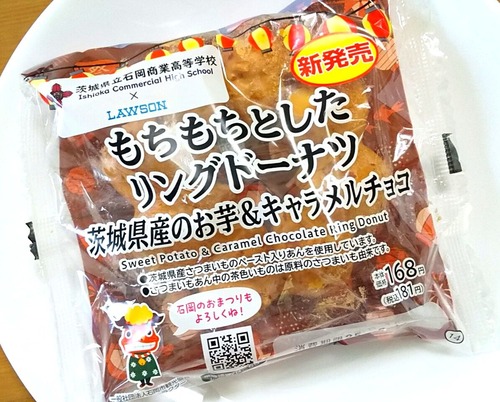 ローソンの関東甲信越地域限定品。 「もちもちとしたリングドーナツ(茨城県産のお芋&キャラメルチョコ)」は、 茨城県立石岡商業高等学校との共同···