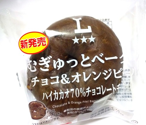 【関東甲信越エリア限定】ローソン むぎゅっとベーグル(チョコ&オレンジピール)ハイカカオ70%チョコレートチップ